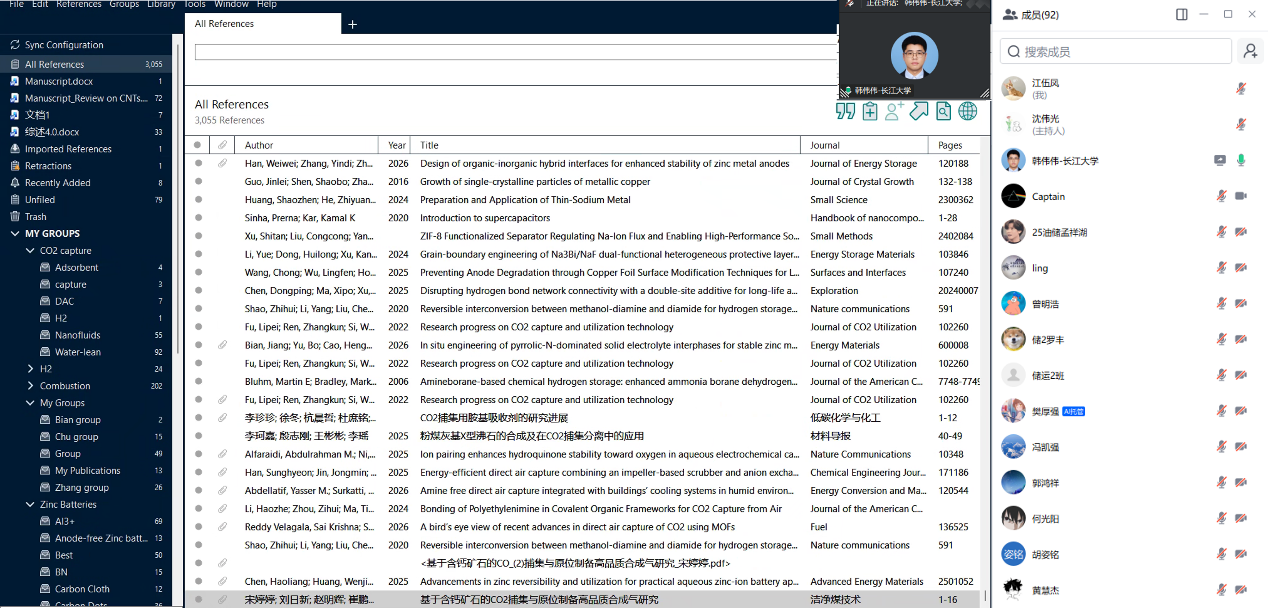 在文献检索与前沿追踪方面,韩老师分别针对中英文文献,介绍了多种检索和持续追踪最新研究成果的方法,现场推荐并演示了X-MOL等文献追踪工具,通过“CO2捕集”、“纳米流体”等关键词展示了实时推送最新论文的效果。他强调,科学设置关键词和分类体系,有助于提高检索精度、避免重复劳动,从而显著提升科研效率。