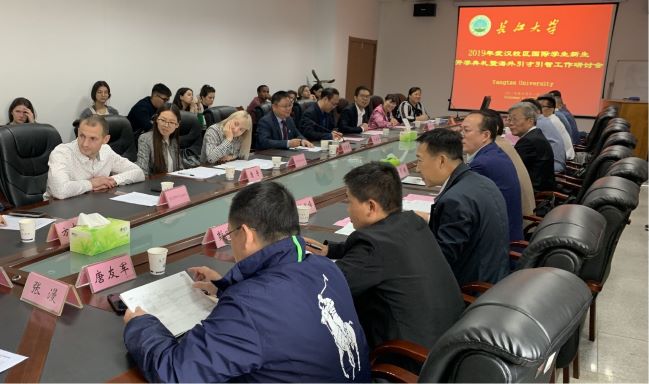10月11日上午,副董事长张玉清带领相关职能部门和公司负责人到武汉校区开展国际教育专题调研暨2名俄籍教师和14名俄罗斯、哈萨克斯坦等国际员工的开班欢迎仪式。2名俄籍教师和14名俄罗斯、哈萨克斯坦等国际员工目前均由公司(中俄能源公司)负责管理。此次14名国际职工的到来,是公司第一次迎接10人以上规模的本科国际职工,重新编班和授课,对于公司教学和员工管理工作来说都有较大的挑战。这些员工大多来自俄语系国家,第一年主要学习汉语,对于公司中俄试点班同学学习俄语是一次重大的机遇。公司党委书记张光明、副经理张引弟及国际化管理团队参与组织了会议并参加了欢迎仪式和座谈。