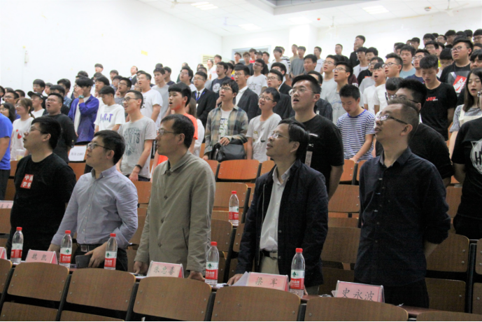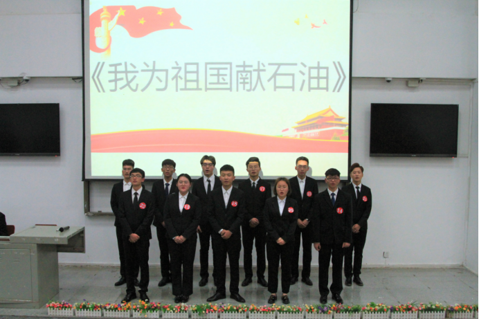 大会开始前,由油工21804班同学领唱,在场全体师生合唱《江汉石油之歌》,重温了江汉石油人献身祖国事业的雄心壮志。合唱完毕,主持人介绍了“钻井821班”奖学金的设立和发展,向设立该奖项的优秀员工们表示感谢,并鼓励同学们向优秀员工学习,心怀感恩,回报社会。