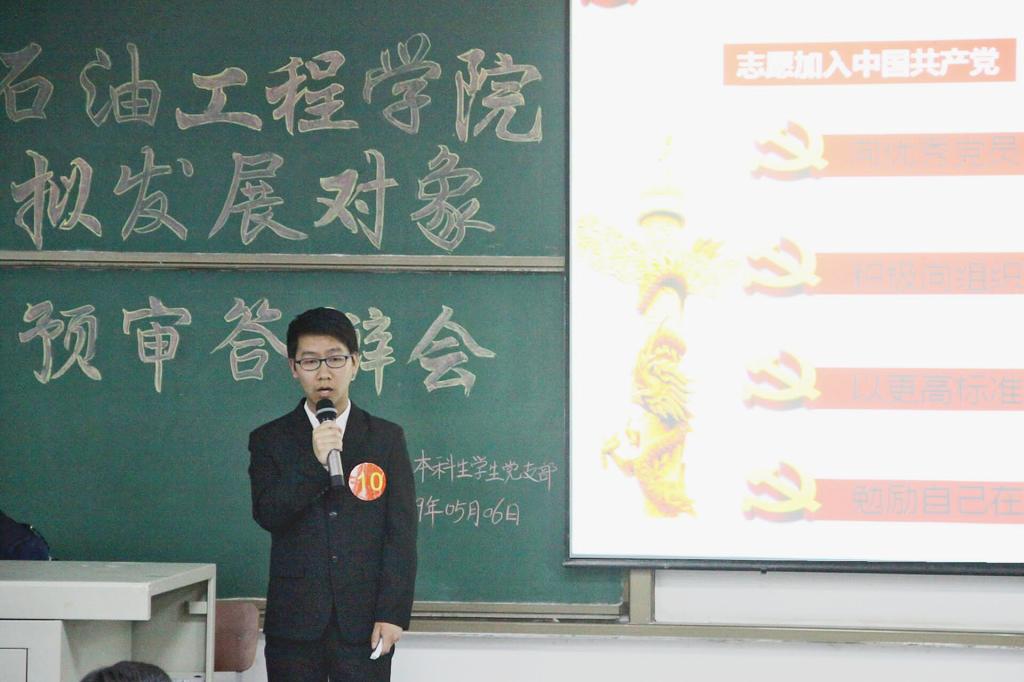 每一位答辩选手都是油工院最出色的学子,他们不仅仅是学习中的佼佼者,成绩名列专业前茅,更是永利yl23411各个社团组织以及各类活动的引领者,带领同学们积极进取,奉献自己。在答辩的自我陈述部分,大家结合自身实际情况,具体深入地谈到了对党的认识、入党动机和自身的现实表现。在党识党情考察环节,每位答辩者都要从准备的题目中抽取一题作答。这些题目涉及到中国共产党的宗旨、党的性质、党在社会主义初级阶段的基本路线、党员的权利与义务、我国现阶段的基本矛盾等,大部分答辩者经过长期思想政治理论学习和熏陶都能流利作答。